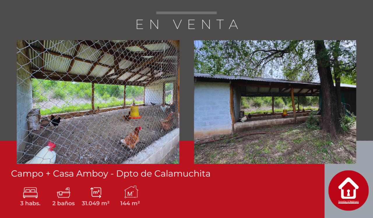 Cuenta con galpones para criadero de pollos, y áreas para desarrollo o emprendimiento (144 m²).